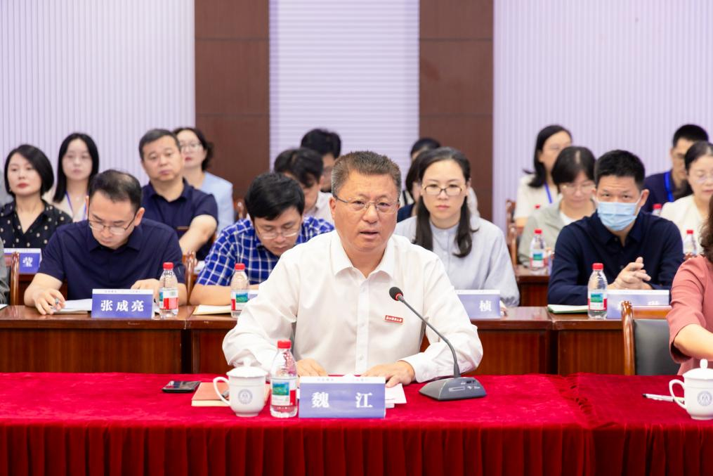 院长刘金兰、山东财经大学国际教育学院原院长刘增美、中南财经政法大学国际教育学院国际学生工作办公室主任李雄涛、中国教育国际交流协会跨境教育质量保障部高级项目官员胡广羽,校党委书记、校长魏江等校领导班子成员出席会议,各二级学院、职能部门负责人共同参会,会议由副校长郑亚莉主持。